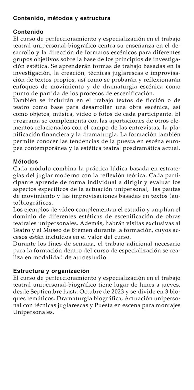 TEATRO UNIPERSONAL BIOGRAFICO 2025